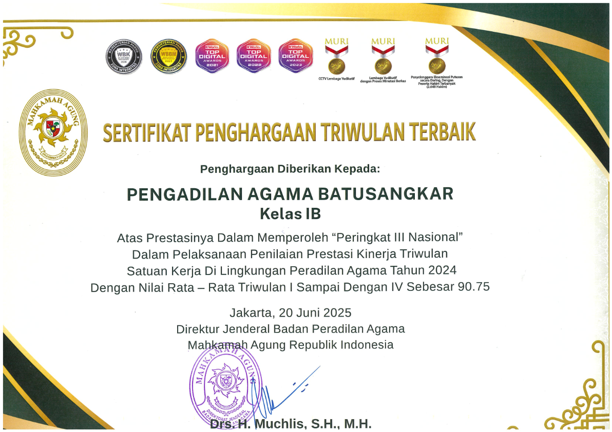Selamat Datang di Website Resmi Pengadilan Agama Batusangkar Kelas 1B